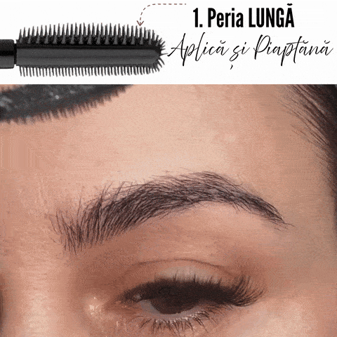 Începe cu sprâncenele curate și uscate. Cu marginea cu perie lungă aplică gelul în mișcări ușoare în zig-zag prin toate firele de păr.
