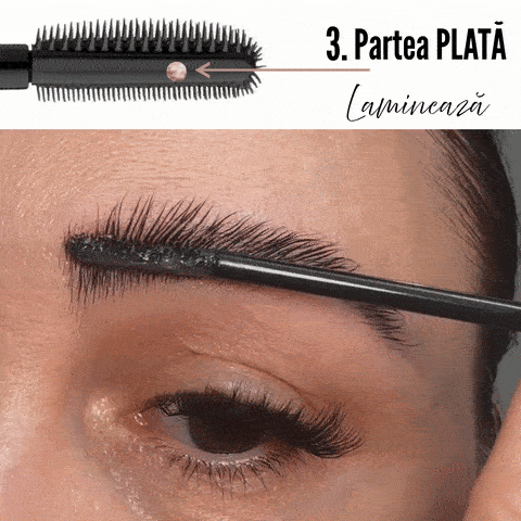 Folosește partea plată a aplicatorului pentru a presa și netezi sprâncenele în poziție.