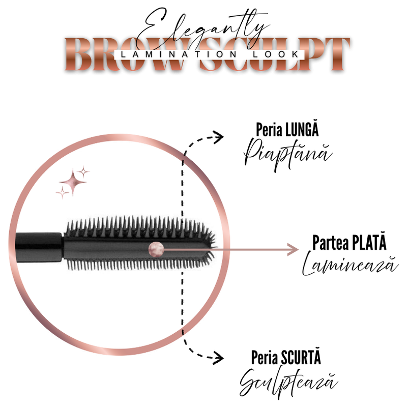 Fiecare margine are un scop clar: aplicare, sculptare și laminare a sprâncenelor cu precizie profesională, în doar câteva mișcări simple.