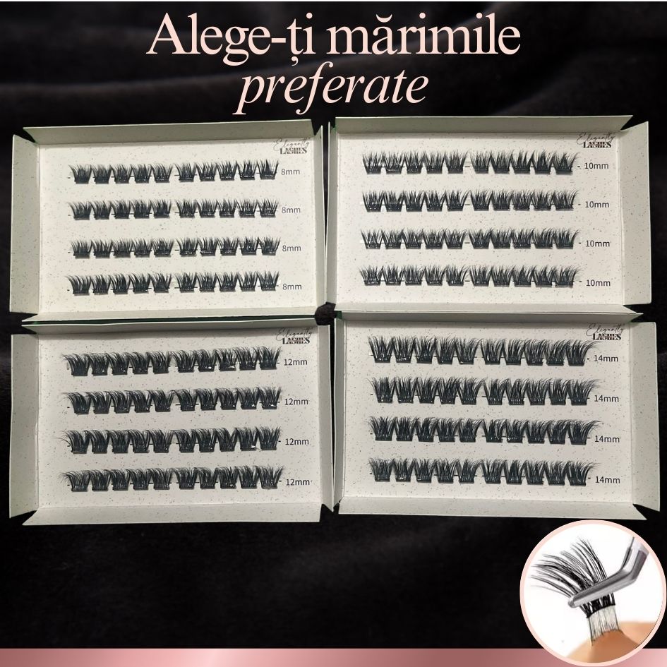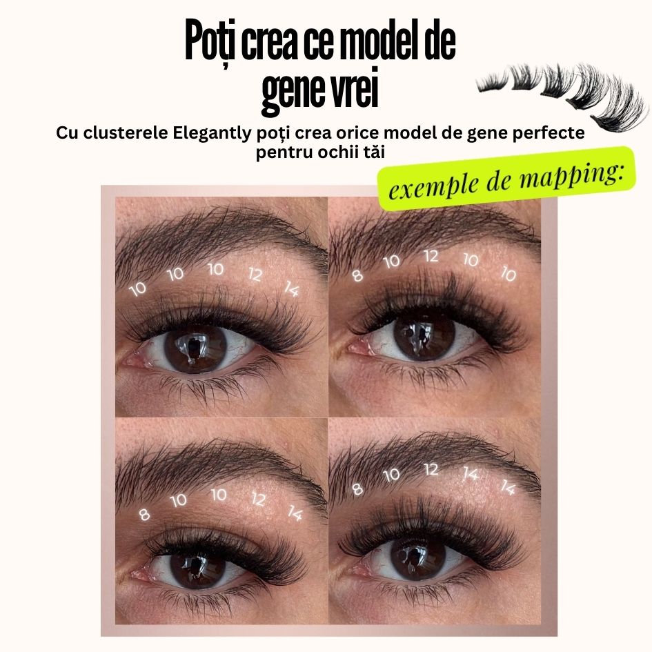 Genele false fără lipici, aplicare într-un singur pas, cu tehnologie exclusivă auto-adezivă, care se lipește instantaneu și durează între 5-10 zile, fără a deteriora genele naturale!
