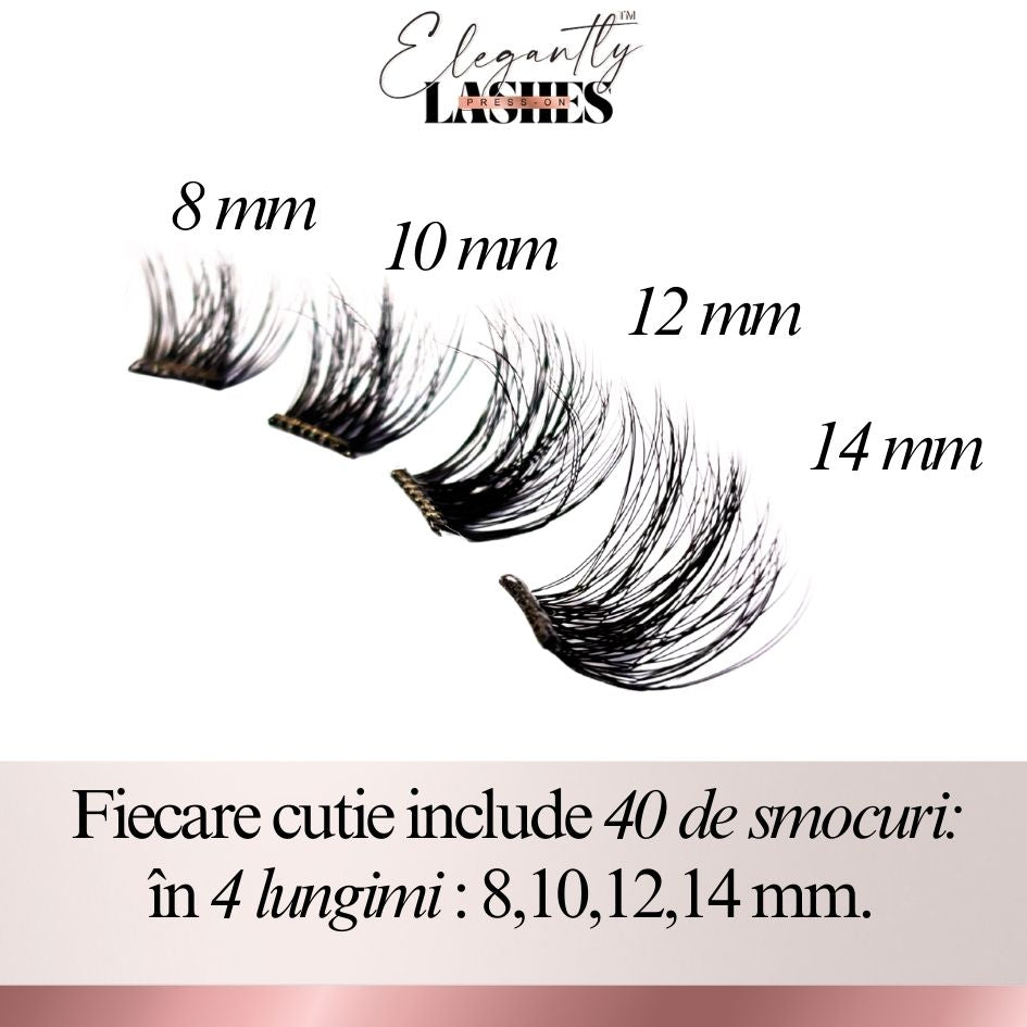 Fiecare cutie conține 40 des segmente /smocuri de gene fine și ușoare în 4 lungimi diferite, ca să le poți combina și crea orice stil îți dorești - de la discret și natural, la Diva, Cat-eye sau Volum.